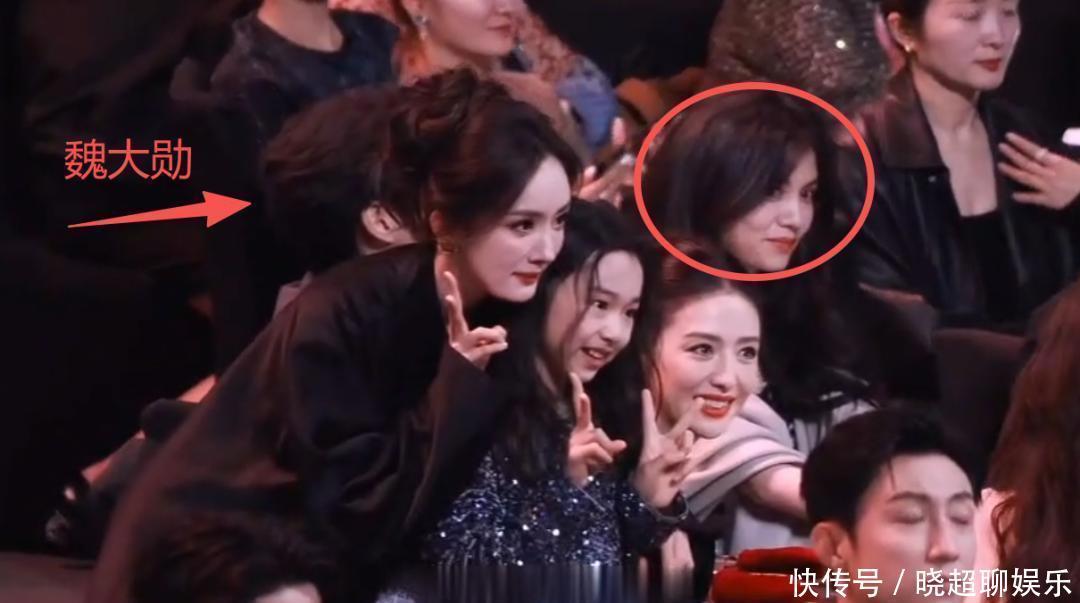 杨幂站在小酒窝背后和她合照,魏大勋站在中间,只隔着一个佟丽娅,距离非常近。有网友从侧面拍下,两个就一同出现在镜头里了。